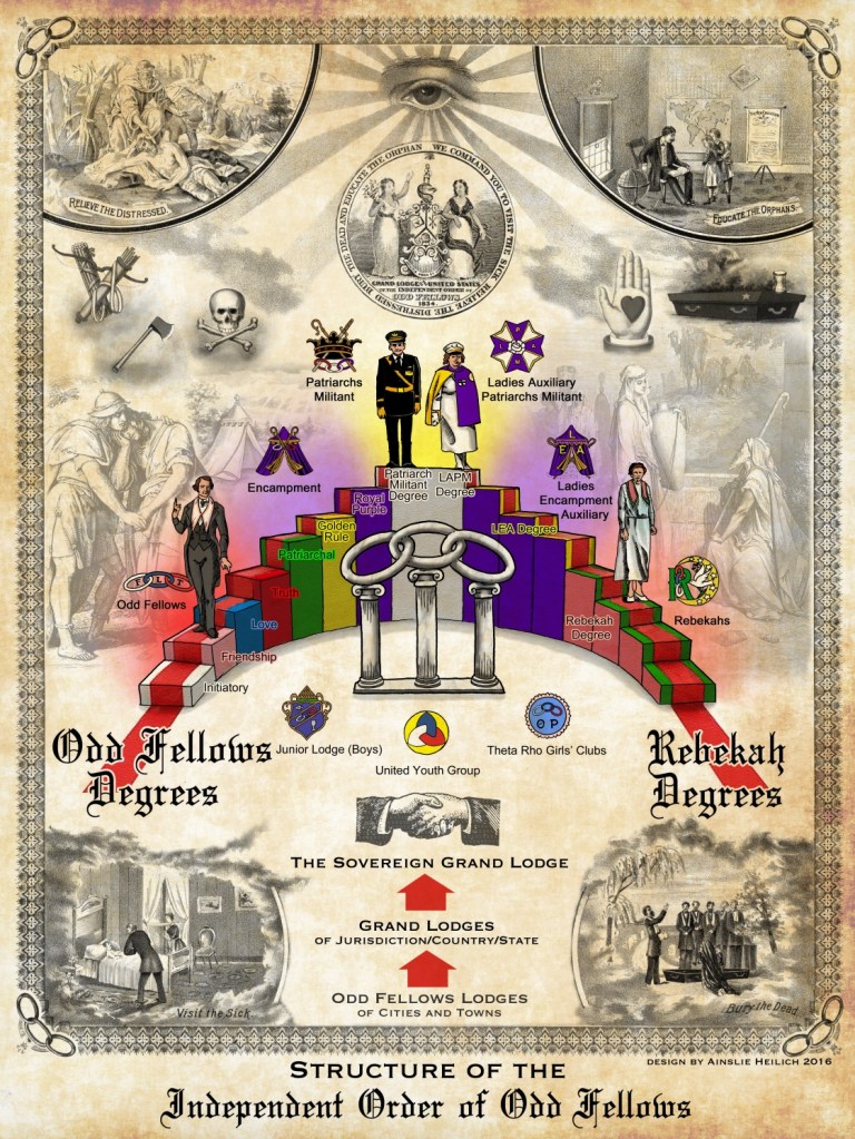 The Lodge is assigned to new initiates. The initials of the Odd Fellows lodge are “FLT” which stands for Friendship, Love and Truth as the basic guides to live by as an Odd Fellow. Once a member has made their way through all the degrees and has had the 3rd degree (truth) bestowed upon them, they are entitled to hold an office or position in their lodge, and are also eligible to go on further in Odd Fellowship through the higher degree branches such as the Encampment and the Patriarchs Militant (aka the Canton)
